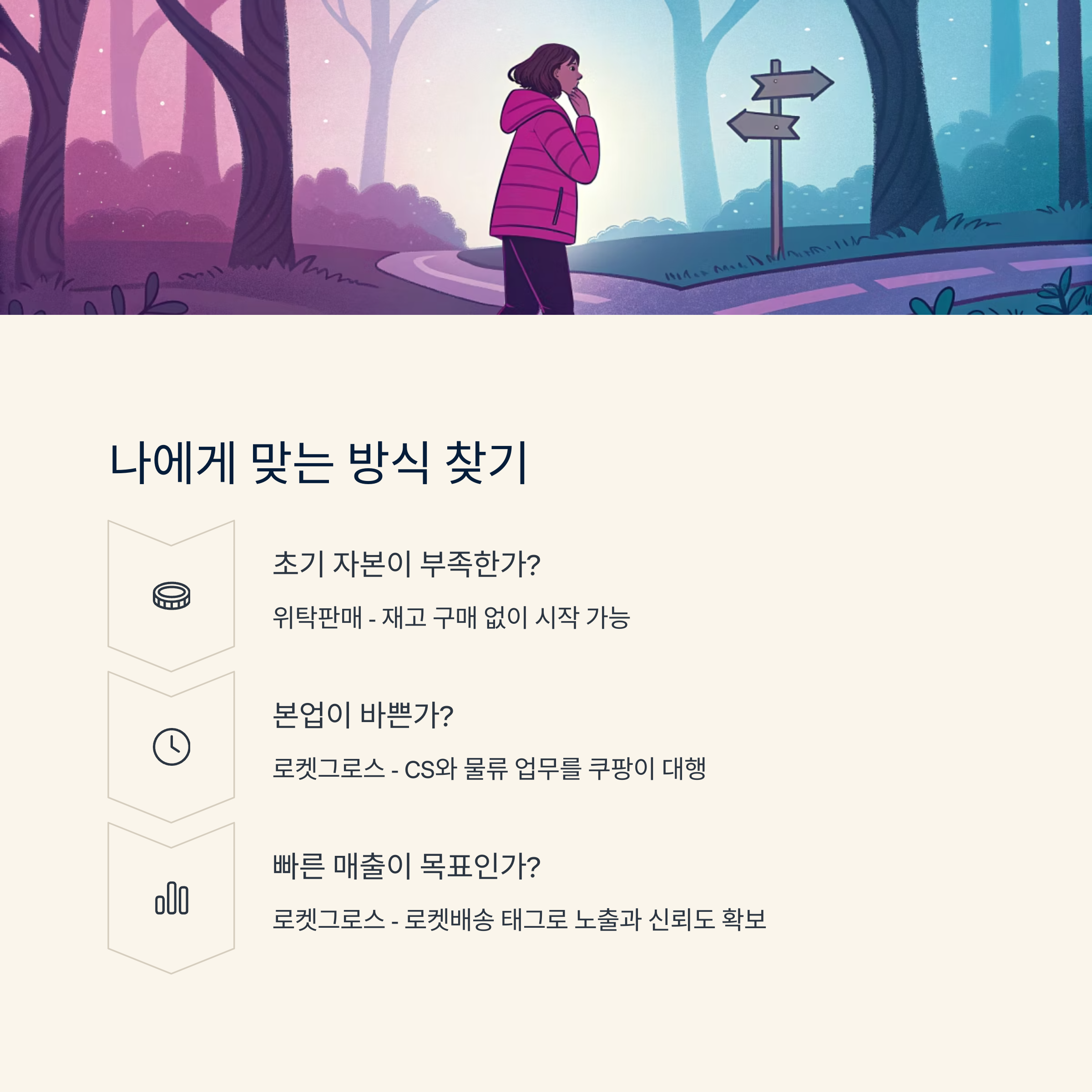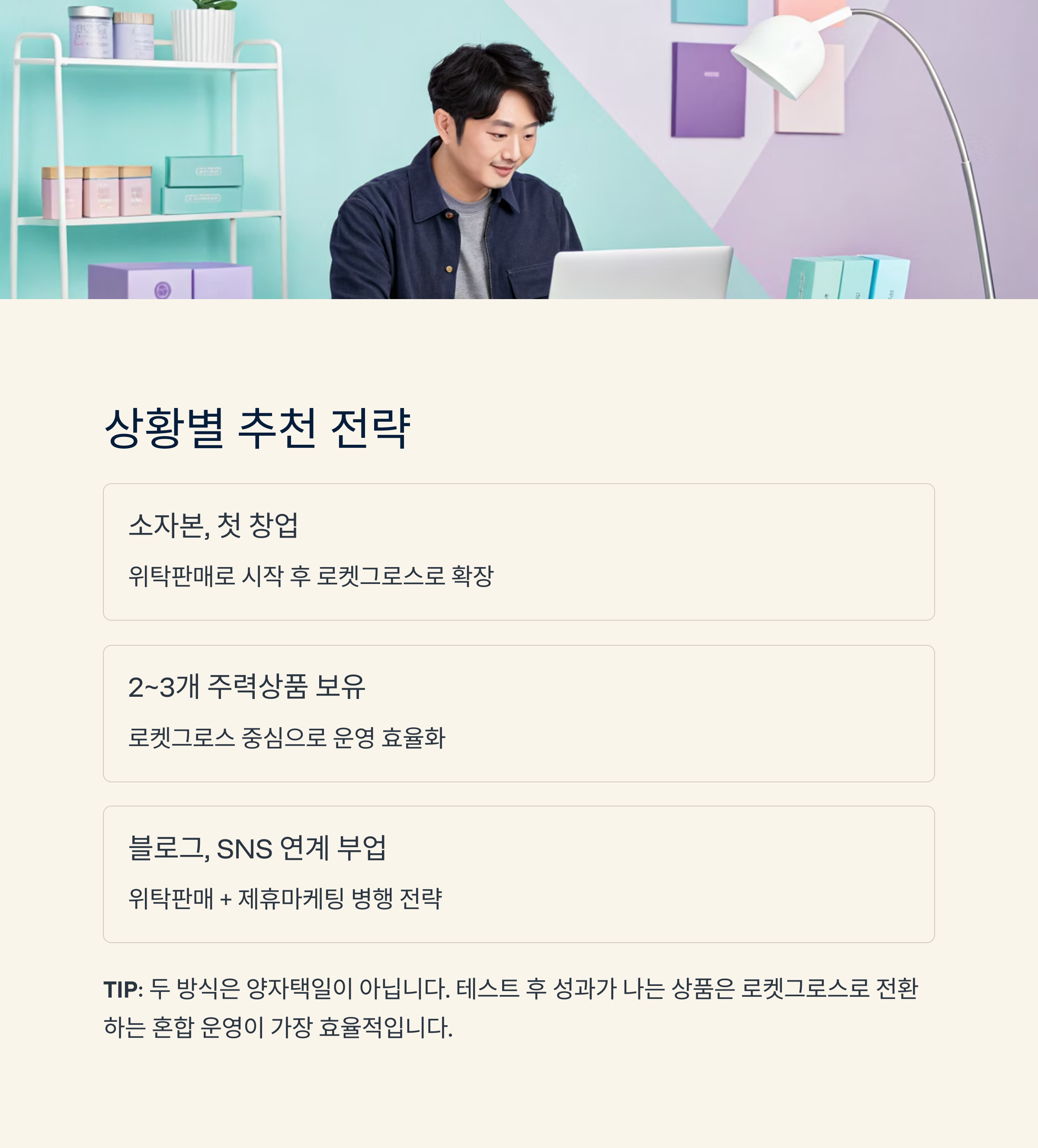 | 소자본, 첫 창업 | 기존 위탁판매로 시작 후 로켓그로스 확장 |