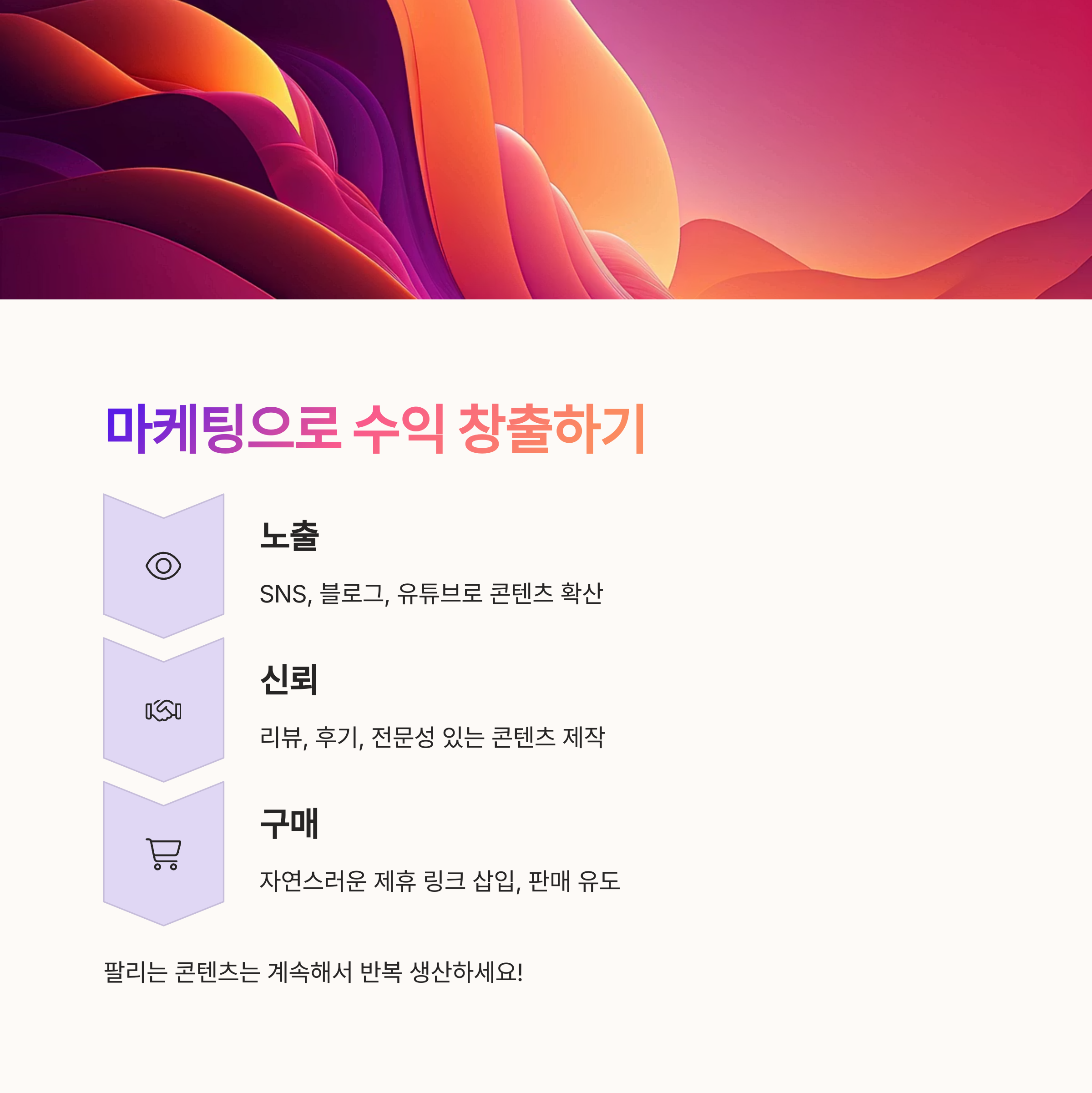- 콘텐츠 반복 생산: “팔리는 글·영상은 계속 써라”